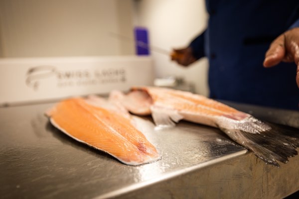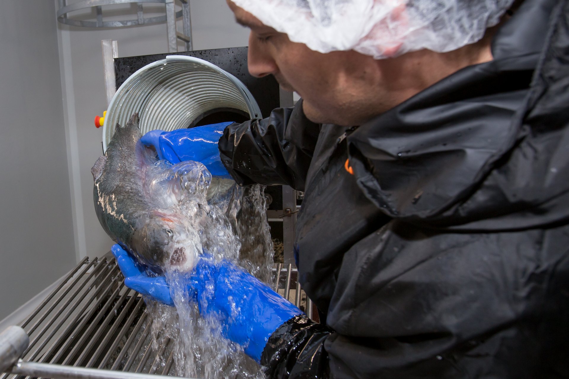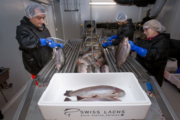 Die Stresshormon-Werte der Lachse aus Lostallo liegen im Normalbereich. Sie leben sogar stressfreier als in der Natur, wo es natürliche Feinde und zu überwindende Hindernisse gibt. Und weil die Lachse kurz vor der Geschlechtsreife schlachtreif sind, wird gleichzeitig der Paarungsstress vermieden. Vor der Schlachtung kommen sie sieben Tage in ein sogenanntes «Ausnüchterungs- oder Hälterungsbecken». In dieser Zeit findet keine Fütterung statt, wodurch der Magen-Darm-Trakt entleert wird. Dies steigert die Hygiene bei der Fischverarbeitung und hat zudem einen positiven Effekt auf den Geschmack.