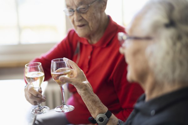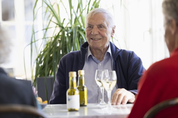 Zum einen führen wir ein Parkcafé mit einer Getränkevitrine. Unser Alterssitz ist ausserhalb von Münsingen gelegen und nicht so stark frequentiert. Deshalb bieten wir in der Vitrine kleine, aber feine Schweizer Weine in 20- und 50-Zentiliter-Flaschen an. Dies ermöglicht Besuchenden wie Bewohnenden Weingenuss: Man trinkt beispielsweise mit dem «Grosi» ein Glas Rotwein in unserer grosszügigen Parkanlage. Zum anderen geniessen Bewohnerinnen und Bewohner auch mal einen guten Tropfen auf ihrem Zimmer.