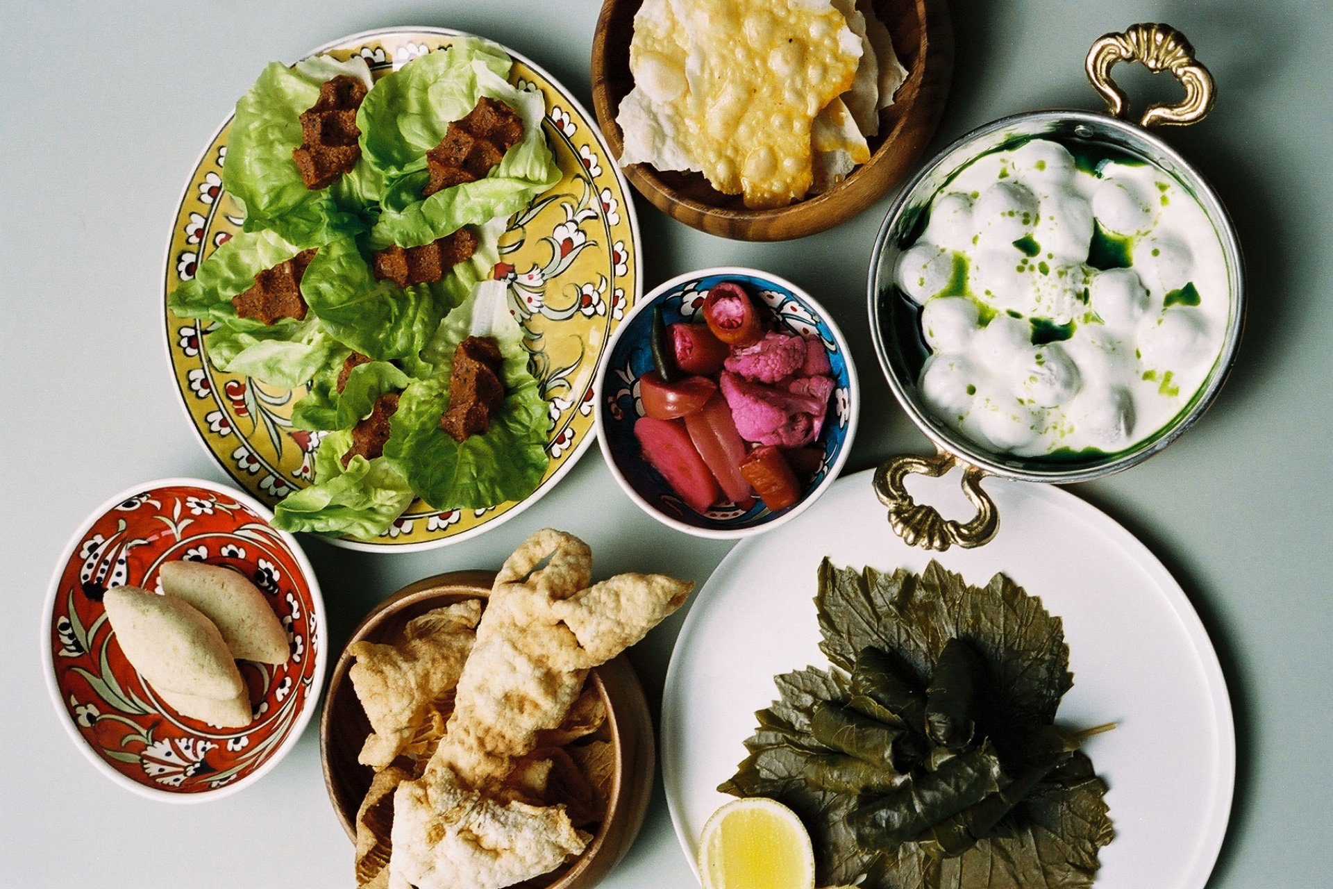 On comprend vite que la cuisine turque ne se limite pas au kebab et au dürüm. La carte du «restoran Gül» est aussi variée que la gastronomie nationale. On y trouve des yemekler (plats) comme le losuk – quenelles au boulgour servies avec du yaourt au lait de bufflonne, de la menthe et du beurre de noix – et, pour les amateurs de saveurs intenses, le lahmacun, une sorte de pizza turque: une pâte fine recouverte de purée de tomates, d'oignons, d'ail, d'agneau haché et d'épices et cuite au four. On le sert avec de l'oseille et du citron. Ou le midye dolmasi, des moules farcies au riz aromatisé. Le pépin de grenade caché dans le riz contraste avec le moelleux de l'association moulesriz: un croustillant surprenant. On est tout aussi impressionné par le tarhana, une galette de blé accompagnée de yaourt et de légumes.