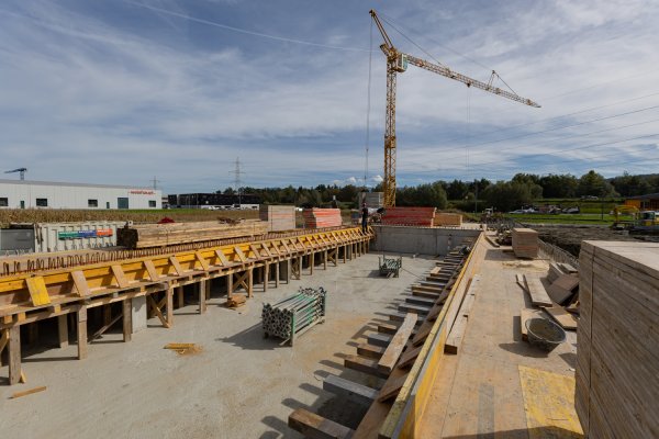 Les travaux de génie civil, la mise en place des pieux ainsi que les travaux de canalisation, y compris la pose des réservoirs d’eau pour la station de lavage, ont été achevés en décembre 2024. La construction de la façade en bois a démarré en janvier 2025. Puis ont suivi les travaux d’aménagement intérieur et de technique du bâtiment.